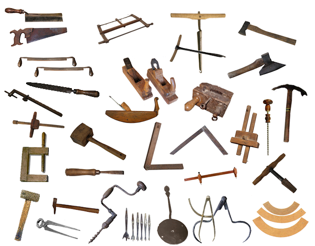 Der Wagner verwendete für den Radbau sehr einfache Werkzeuge.