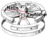 Das Herzstück eines Rads ist die Nabe. Die Zapfenlöcher werden vorgebohrt und ausgestemmt.