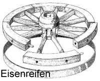 Alle Radverbindungen werden erst durch den Druck des Eisenreifens vollkommen zusammengepresst.