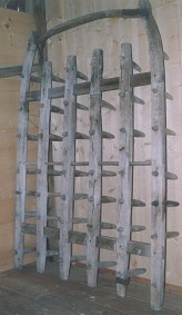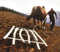 Der Wagner stellte Eggen für den Bauern her.