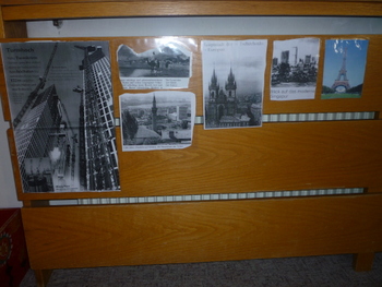 Mit Klebestreifen haben wir die Bilder in der Bauecke auf die Heizung geklebt.