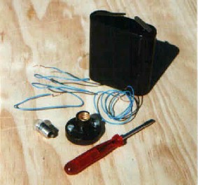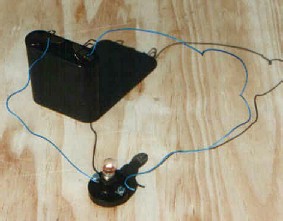 c) mit Batterie, Glühlampe, Leitungsdraht und Lampenfassung