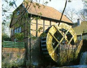Die älteste Form des Wasserrades - und für den Nachbau am besten geeignet - ist das unterschlächtige Schaufelrad. Es benötigt nur ein Fließgewässer, nicht aber ein größeres Gefälle wie ein oberschlächti-ges Rad, wie es in gebirgigen Regionen weit verbreitet ist. Fallendes Wasser liefert durch den größeren Höhenunterschied deutlich mehr Energie als Fließwasser.