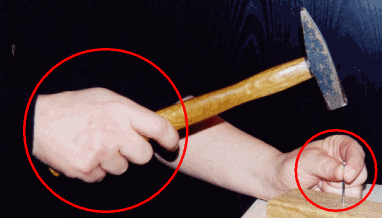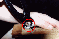 Seitlich Holzplättchen unterlegenZange am Griffende anfassenNagel heraushebeln