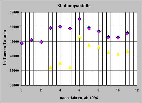 | Jahren | insgesamt | gefährlich | nicht gefährlich | Haushaltsabfälle | insgesamt | gefährlich | nicht gefährlich | ||||||