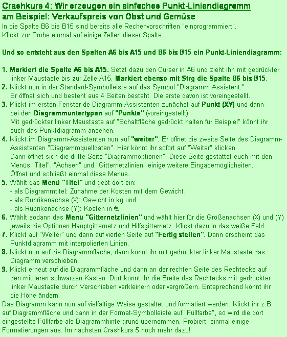 Gewicht in kg Tomaten; Kosten in € Kartoffeln; Kosten in €