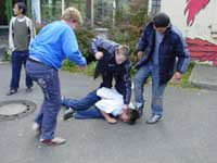 - Diskutiert in eurer Kleingruppe, ob sich das Risiko der Entstehung von Jugendgewalt dann drastisch erhöht, wenn mindestens zwei der folgenden drei Faktoren zusammentreffen: (a) die Erfahrung innerfamiliärer Gewalt, (b) gravierende soziale Benachteiligung der Familie und (c) schlechte Zukunftschancen aufgrund eines niedrigen Bildungsniveaus. Nutzt dabei die Modelle zur Analyse von Gewalt