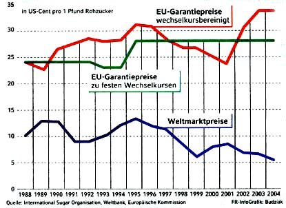 ... "Sowohl die Preise als auch die Abnahmemengen sind für europäische Zuckeranbauer und Zuckerverwerter festgelegt. So steht für sie faktisch schon am Anfang des Jahres fest, was sie in den nächsten zwölf Monaten verdienen werden". ...