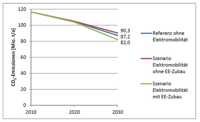 " (...) Szenario Elektromobilität, welches bis zum Jahr 2020 einen Bestand von etwa 537.000 Elektrofahrzeuge und im Jahr 2030 rund 5,8 Millionen Fahrzeuge umfasst, welcher in den jeweiligen Segmenten konventionelle Pkw ersetzt, werden bei der Bilanzierung der CO2-Gesamteffekteauf den Pkw-Bestand zwei Energieerzeugungsoptionen berücksichtigt.