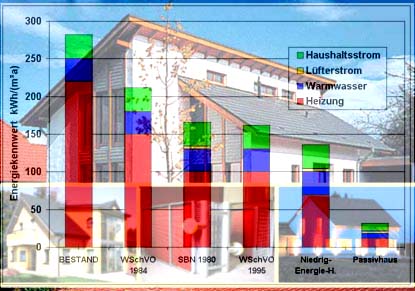 bei Niedrigenergiehäusern und schließlich bei Passivhäusern