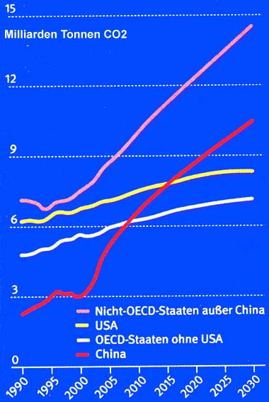 ... "Eine alte Frage tritt mit neuer Schärfe hervor - die nach der Gerechtigkeit. Wer darf wie viel Klimagas in die Atmosphäre pumpen? Die Industrieländer haben die Erderwärmung zwar verursacht; deshalb sind sie als Erste auch in der Pflicht. Begrenzen lässt sich das Problem aber nur noch, wenn auch die bisher Zukurzgekommenen bei ihrer ökonomischen Aufholjagd ökologische Leitsplanken akzeptieren. " ...