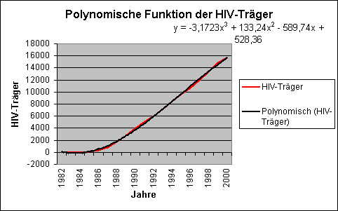 Wir haben eine Statistik der Neuinfizierten und der Todesfälle in den Jahren 1982-2000 erstellt. Aus dieser haben wir die HIV-Träger berechnet.