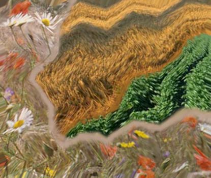 Schwingende Kornfelder und Kartoffelacker sind von blühenden Rändern umgeben. Viele "Unkräuter" können dort überleben, ohne die Ernten zu gefährden und zu vernichten.