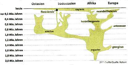 Funde von Fossilien menschenähnlicher Lebewesen sind bis heute immer wieder eine aufregende Sache und die meisten Wissenschaftler rekonstruieren aus den Funden einen gemeinsamen Stammbaum von Menschen und Menschenaffen.