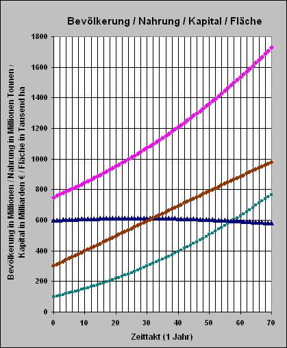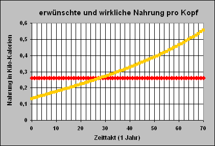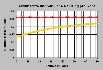 Die Faktoren f1, f2 und f3 sind experimentell so ermittelt, dass die verfügbare Nahrungsmenge pro Kopf steigt und sich aus der "Hungerzone" entfernt. Das ist die gewünsche Entwicklung in dieser Weltrregion.