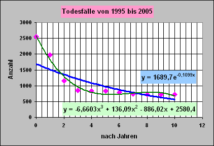 - Ab 1994 nimmt dann die Zahl der Todesfälle zunächst schnell dann quasi auf einem Niveau wieder ab.