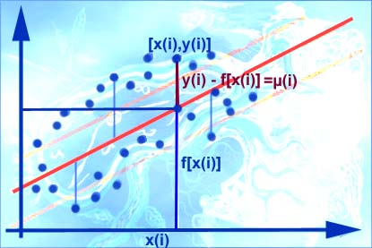 F(a/b) = ∑  µ(i)² = ∑ {y(i) - f[x(i)] }² =
