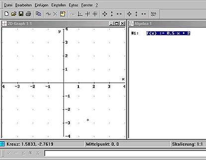 Der Spurmodus setzt einen "Punkt" auf den Graphen. Klickt man dann irgendwo auf den Graphen, dann erscheinen in der Statuszeile die Koordinaten genau dieses Punktes. Die beiden nächsten Symbole bewirken wieder jeweils ihr Gegenteil. Alle ist auszuprobieren!