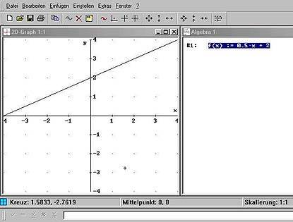 Wichtig: Die Funktion f(x) wird mit dem Zeichen ":=" definiert. Dezimahlzahlen werden mit Zahl Punkt Zahl eingegeben.