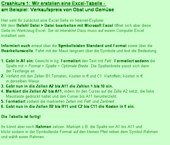 Gewicht in kg Tomaten; Kosten in € Kartoffeln; Kosten in €