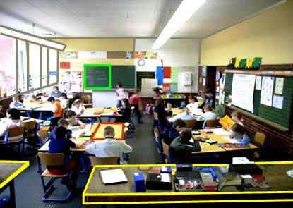 Tisch- und Tafelflächen, Fenster- und Türöffnungen, Wand- und Schulhofflächen werden durch gerade Linien oder auch Kreislinien begrenzt. Auch Fotos von Klassenräumen oder Schulhäusern sind Flächen. Sie täuschen unseren Augen aber ein räumliches Gebilde vor.