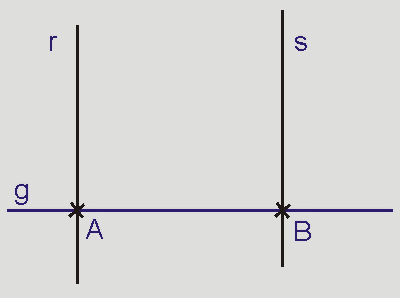 • die Gerade s, die senkrecht auf g im Punkt B steht