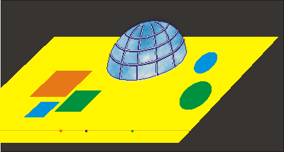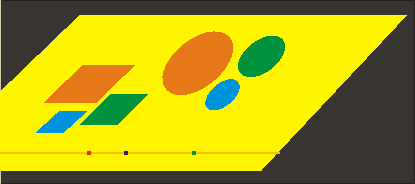Blauquadrat nimmt Grünquadrat und Rotquadrat