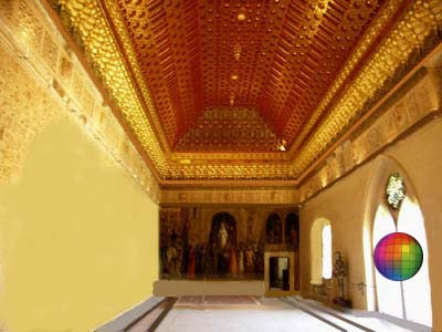 Im gotischen Fenster des Tronsaals im Alkazar