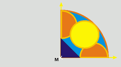 Die Grundfigur wird 3 mal hintereinander um den Drehpunkt M um 90° gedreht.