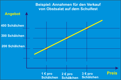 Aus der Sicht des Anbieters sieht es anders aus. Ihr werdet auf dem Schulfest euer Angebot dann erhöhen, wenn die Eltern bereit sind, höhere Preise zu zahlen. Denn mit einem höheren Preis könnt ihr einen größeren Erlös erzielen.