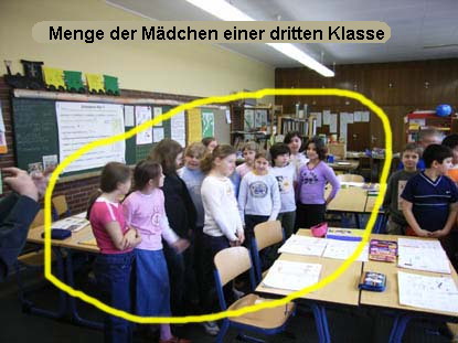 Die Elemente, die zur Menge gehören sollen, können aufgezählt werden. Sie können aber auch - wie im nebenstehenden Bild - beschrieben werden.