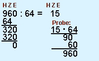 Überschlagsrechnung: 960 : 60 = 16