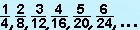 Die Zahlenpaare (1,4), (2,8), (3,12), (4,16), (5,20), (6,24),... bilden eine Klasse von Paaren natürlicher Zahlen der Bruchzahl   .