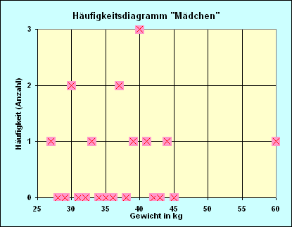 • Erstellt für das Merkmal "Körpergewicht" Jungen ebenfalls eine Häufigkeitsverteilung und ein Häufigkeitsdiagramm.