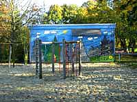 Bänken und einer kleinen "bunten und