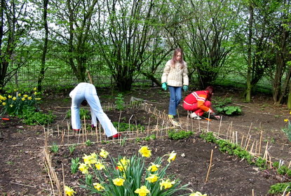 Hier wurde ein Schulgarten mit Beeten für jede Klasse angelegt.