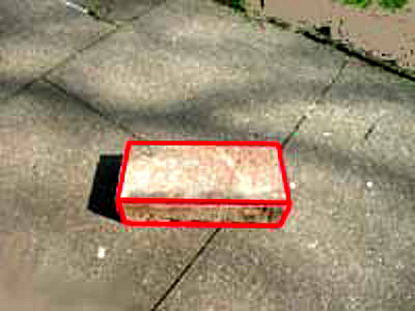 Die sichtbaren Kanten des Ziegelsteins sind rot nachgezeichnet.