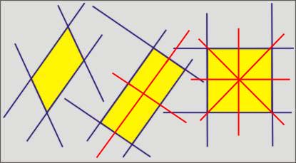 • Bei welchen Winkeln kommt ein Rechteck, eine Raute, ein gleichseitiges Dreieck, Sechseck, ... mit sich zur Deckung?