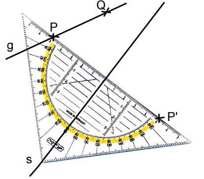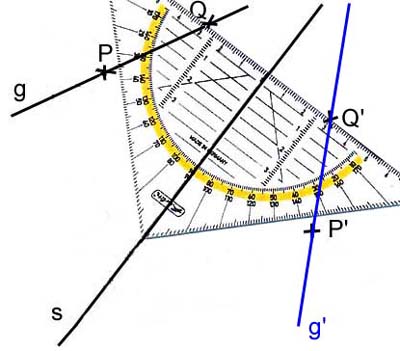 gerade s. Auf der Originalgeraden g werden zwei beliebige Punkte P und Q eingetragen.