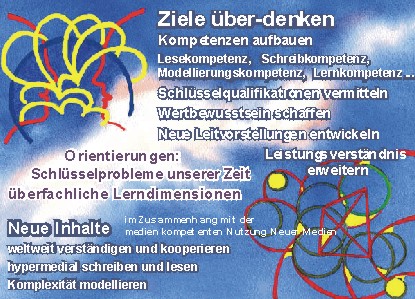 Die Sitemap dieses Teilbereiches "Ziele über-denken" verdeutlicht grafisch - zusammen mit einem Inhaltsverzeichnis - die argumentative Einbettung der Ausführungen in das Gesamt der Lern- und Arbeitsumgebung. |