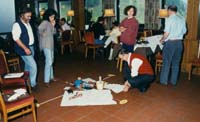 Ein weiterer wesentlicher Punkt bestand von Anfang an darin, die Arbeitstechniken so zu wählen, dass selbstgesteuertes Lernen ermöglicht wurde. Wir wollten nicht in erster Linie Vorträge und Informationen geboten bekommen, sondern mit unterschiedlichen Arbeitsformen und unterschiedlichen Techniken selbst arbeiten. Freilich war dies, vor allem zu Beginn, nicht unbedingt ein Anliegen, das die Kerngruppe mit allen Kolleg/innen geteilt hätte. So entzündete sich in der Planungsphase häufig eine heftige Diskussion über die Frage nach den Methoden. Grundsätzlich ließen sich zunächst zwei Positionen unterscheiden: die Position derjenigen, denen es darum ging, möglichst viel Input zu erhalten, um die Fachkraft gewissermaßen optimal zu nutzen, und die Position derjenigen, denen es mehr darum ging, selbst Erfahrungen machen zu können, die sich nicht auf Zuhören beschränken sollten. Mit der Zeit haben sich die beiden Positionen einander angenähert, auch weil die Gruppe versuchte, stets ein ausgewogenes Verhältnis herzustellen zwischen Theorie und praktischer Anwendung. Aus diesem Grund trifft die Bezeichnung "Referent" eigentlich gar nicht zu: treffender wäre der Begriff "Prozessbegleiter", auch "Moderator" oder "Berater". Die Methodenvielfalt in den Tagungen ermöglicht es den Lehrpersonen, selbst vielfältige Erfahrungen zu machen, Neues kennen zu lernen und auszuprobieren, so dass sich, auf längere Sicht hin, auch Auswirkungen auf den Unterricht selbst zeigen, sei es was den Einsatz von Methoden anbelangt, sei es in Bezug auf die "erlebte" Einsicht, dass Unterricht viele Sinne ansprechen muss, um wirksam zu sein. | |||