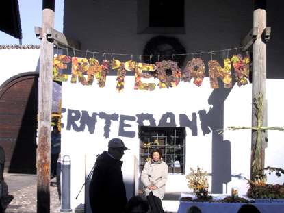Der Blick in die Vergangenheit soll nicht nur auf das Fach Geschichte beschränkt bleiben. Wer entdeckt, wie etwas entstanden ist, bekommt oft einen besseren Zugang dazu. Neues und Altes sowie der Umgang damit kann insbesondere im Bereich der Landwirtschaft als wichtiges Thema begriffen werden. Wer Traditionen als Bestandteil der bäuerlichen Welt begreift, kann sie als Hilfen für die Orientierung erkennen. Erntedankfest 2002 |