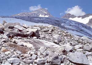 Diese Gletschermoräne befindet sich in der Nähe des Pfitscherjoches, es sind die Reste eines alten viel größeren Gletscherstandes des "Stampflkees" unterhalb des Schrammacher. Der vielzitierte Klimawandel hat also auch hier seine Spuren hinterlassen. Meereshöhe etwa 2700 m.