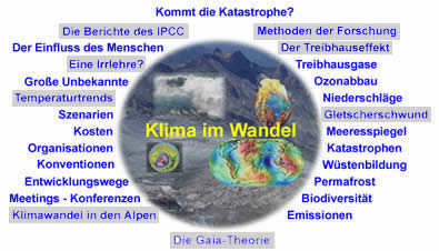 Aufgabe 1: In einer schriftlichen Arbeit sollst du wenigstens 3 der einzelnen Problemkreise aus der Grafik oben kurz beschreiben. Also etwa: Was ist Permafrost, oder was ist Biodiversität? Was ist der IPCC? Aufgabe 2: Wähle einen dieser Themenkreise und bearbeite ihn ausführlicher. Vielleicht findest du Problemkreise aus deiner näheren Umgebung.
