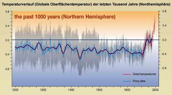 Das Diagramm zeigt den Temperaturverlauf der letzten Tausend Jahre auf der Nordhemisphäre.