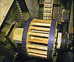in ein Ritzel mit hölzernen oder eisernen Rundbolzen..