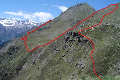 Bild oben: Wahrscheinliche Abrisslinie des Ridnauner Bergsturzes |