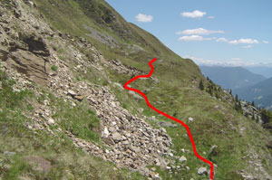 Deutlich erkennbares Spalten- und Kluftsystem an der Abbruchgrenze des Ridnauner Bergsturzes. Entlang der Spalten verläuft übrigens der Große Ridnauner-Höhenweg (vom Rosskopf nach Maiern)