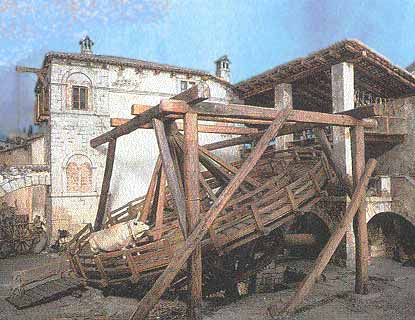 ihr Laufen und durch ihr Gewicht Mühlsteine antrieben