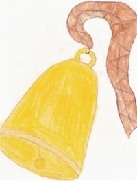 Am Glockenriemen hängt eine Glocke.